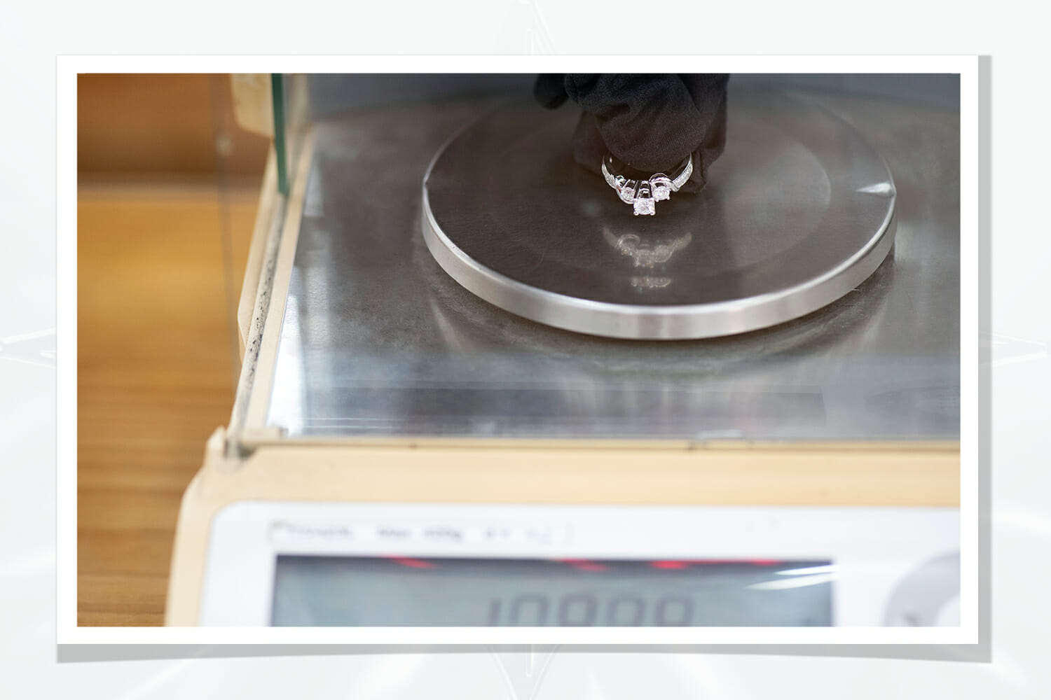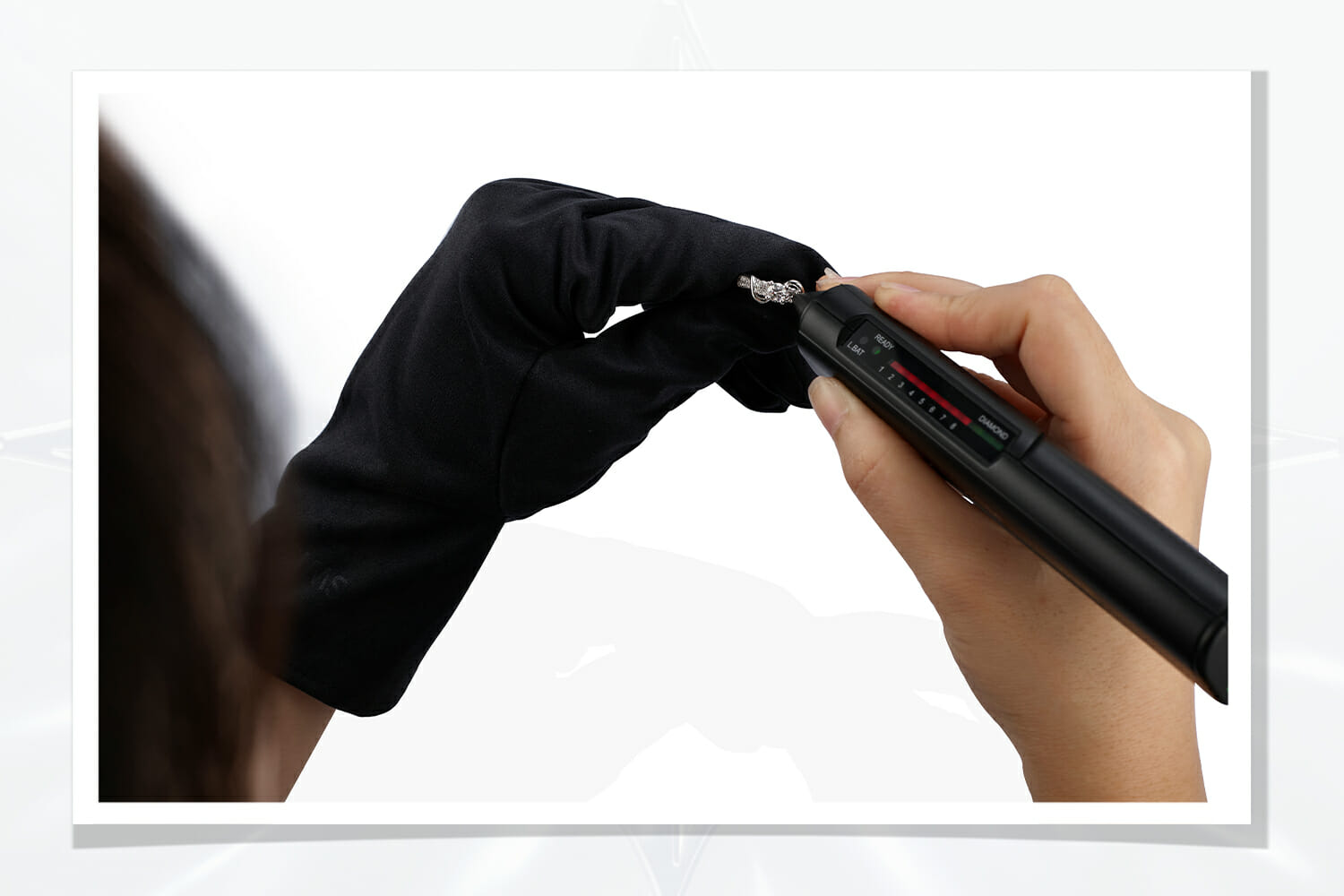 Bước 3: Tiến hành đo size đá chủ và sử dụng máy thử kim cương chủ và tấm. Sau đó, dùng máy soi bề mặt kim cương và mã số cạnh. Đồng thời hướng dẫn khách kiểm tra dãy số trên kim cương và giấy kiểm định trùng nhau.