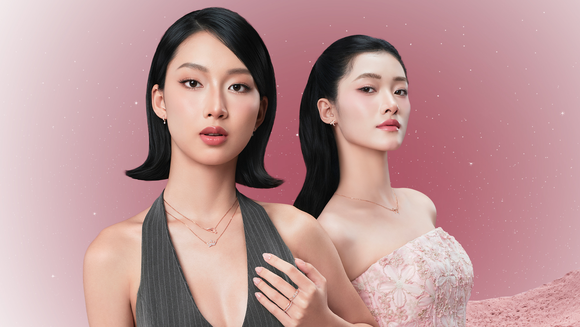 Trang sức vàng hồng mới mẻ mở ra một vũ trụ cá tính dành cho những cô gái yêu sự khác biệt. Thiết kế nhuyễn và tinh xảo tạo nên vẻ đẹp trẻ trung, hiện đại, giúp phái đẹp tự do khám phá phong cách riêng và tỏa sáng theo quỹ đạo của chính mình.