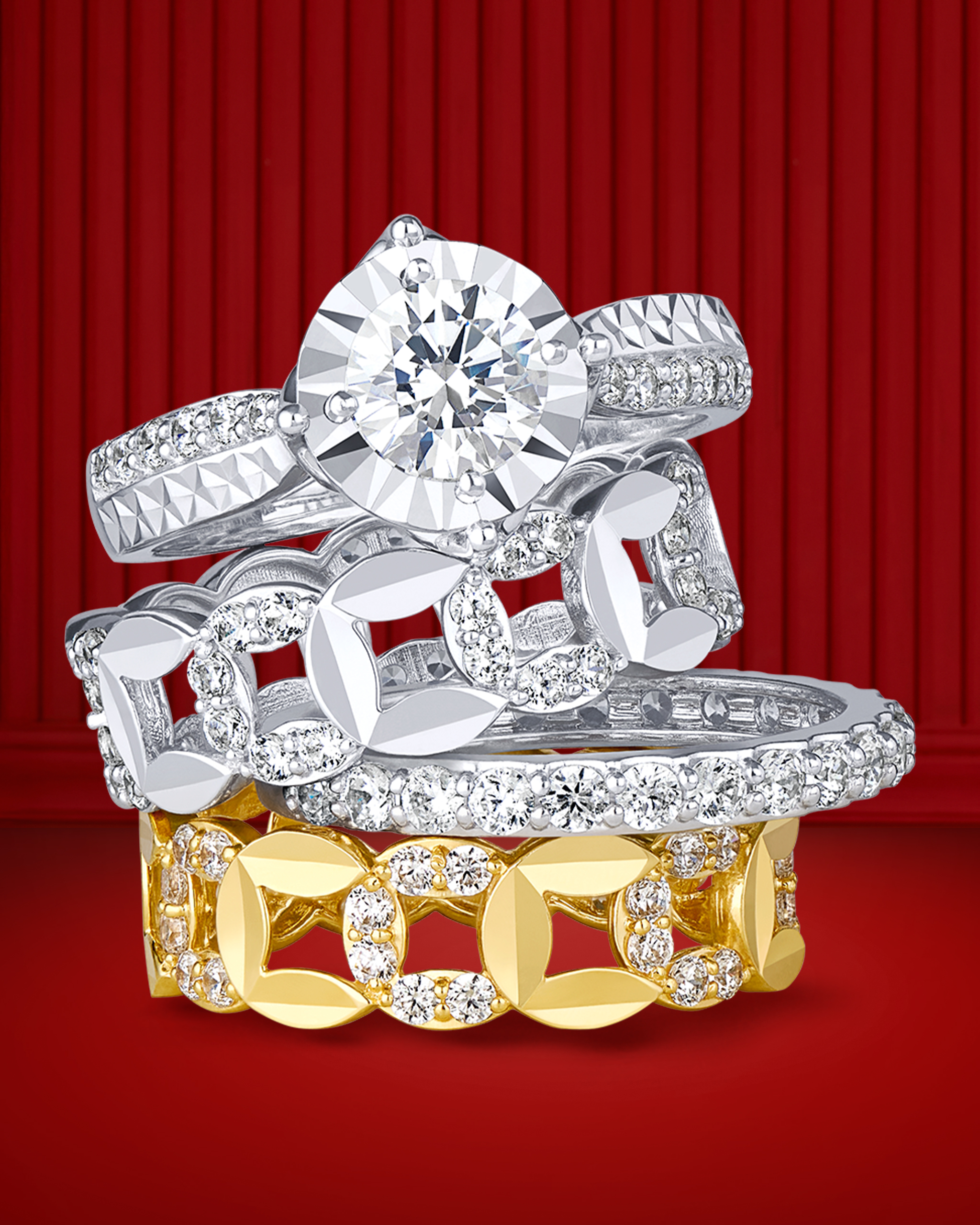 Sự kết hợp có chủ ý giữa vòng tay, lắc tay hay nhẫn, xếp chồng tinh tế hoặc phân bổ hài hòa trên từng ngón tay, tạo nên tổng thể cân đối. Xu hướng stacking trở lại đầy mạnh mẽ trên đường đua trang sức 2026.