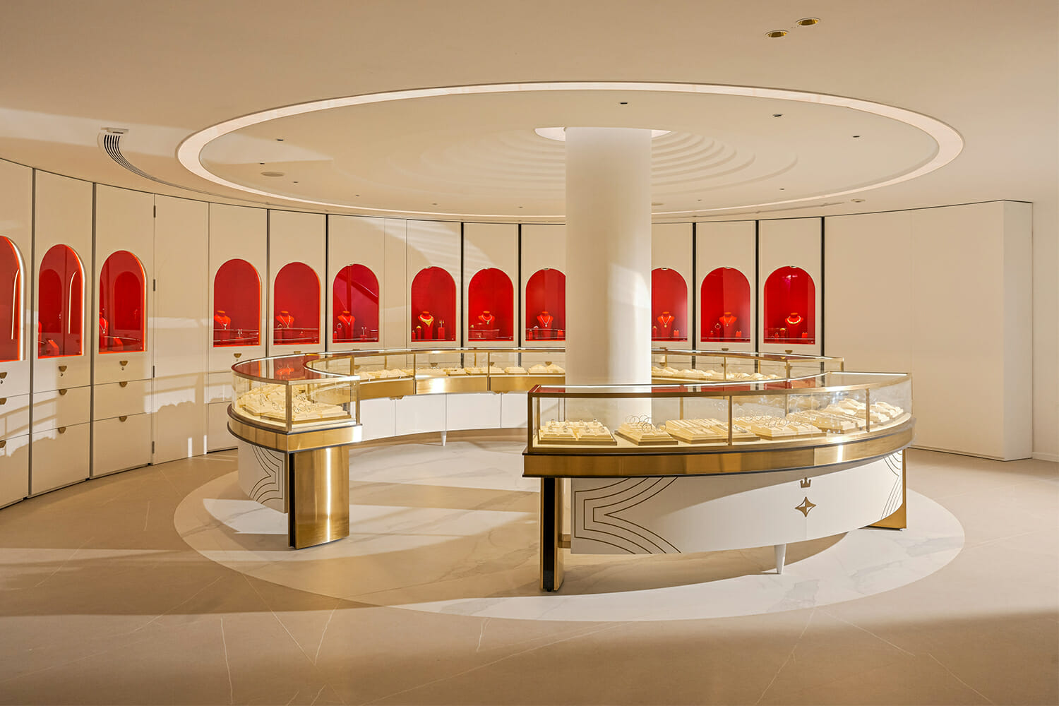 Toàn bộ không gian 600m2 của cửa hàng NTJ Flagship được thiết kế theo những tiêu chuẩn thẩm mỹ mới nhưng vẫn mang đậm dấu ấn riêng biệt của thương hiệu với hai màu vàng đồng và đỏ liên chi đặc trưng. Hơn thế nữa, NTJ đặc biệt chăm chút vào từng món đồ nội thất, được thiết kế riêng để có thể làm nổi bật lên DNA của thương hiệu.