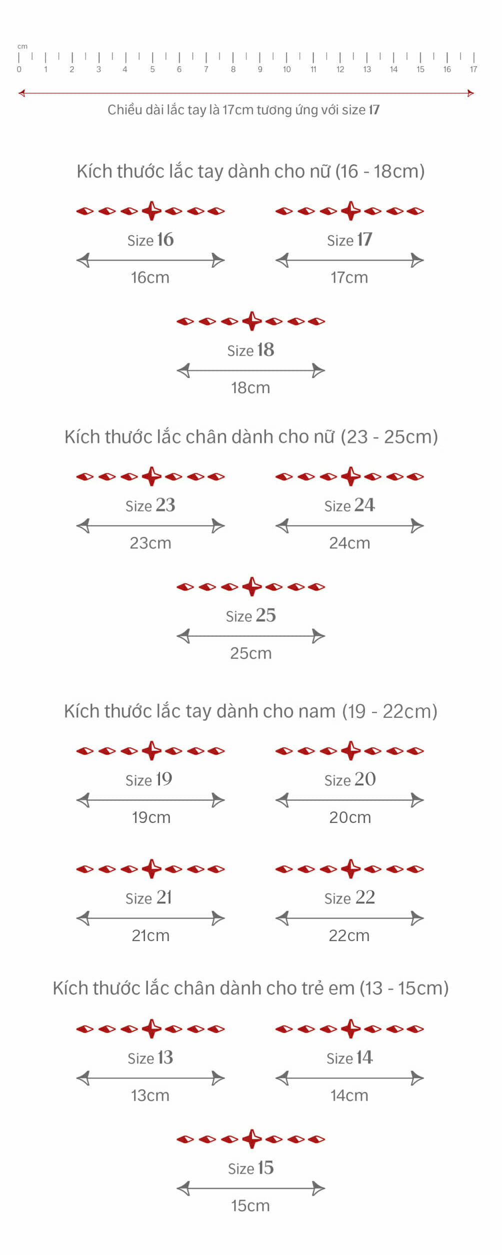Lưu ý: Cách đo thủ công sẽ không thể cho ra kết quả chính xác nhất. Để biết được size lắc đúng nhất, hãy liên hệ với NTJ qua Tổng đài 1800 599 973 hoặc đến cửa hàng gần nhất để được nhân viên hỗ trợ đo trực tiếp.