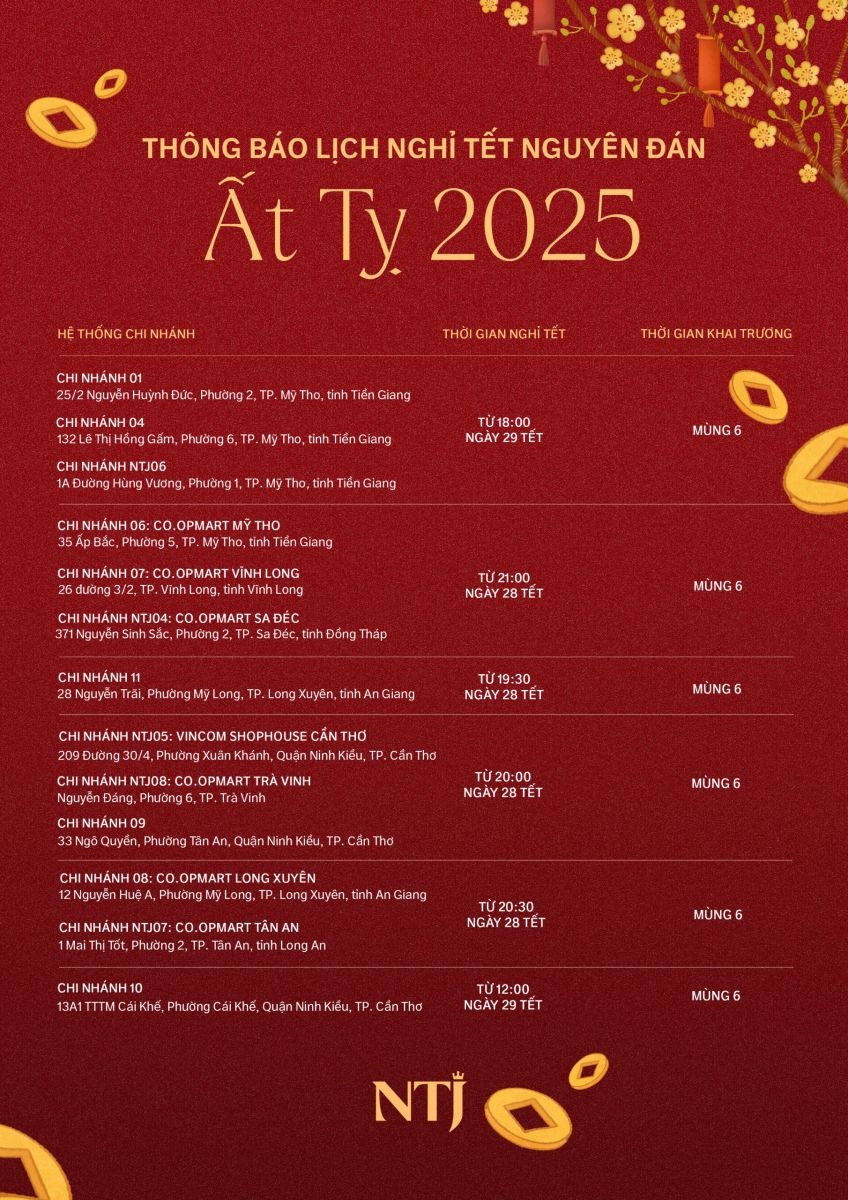 NTJ kính mong Quý Khách hàng thông cảm và bỏ qua những sai sót không đáng có. Chúc Quý Khách hàng một năm mới vạn sự bình an, tấn tài tấn lộc.